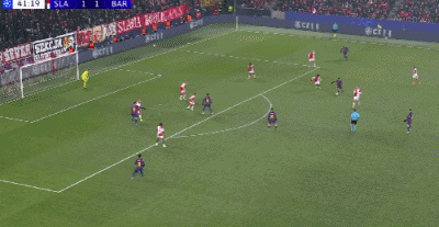 比赛开打后不久,巴萨的城门便宣告失守,第10分钟,布拉格斯拉维亚角球机会,霍莱什前点头球摆渡,后点的库谢伊卡住身位近距离撞射入网,0:1!这是巴萨队史第一次连续10场欧冠都遭遇了丢球。第29分钟,埃里克禁区外远射一脚,斯塔涅克飞身扑出皮球第34分钟,埃里克-加西亚直传,拉菲尼亚脚后跟顺势一嗑,德容肋部不停球斜塞,费尔明小角度劲射击中门将反弹入网,1:1!