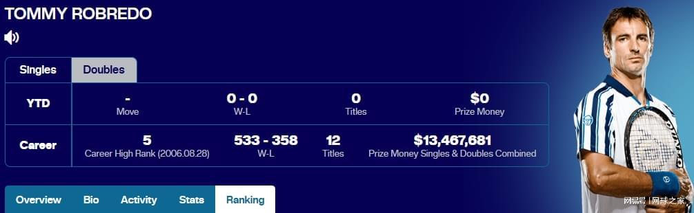 ATP官网刊载的罗布雷多资料,目前他担任巴塞罗那站的赛事总监